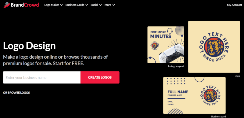 BrandCrowd is another logo design tool that offers us design options that we can tailor. In the editing section, we’ll be able to adjust the layout, colors, size, text, shadows, and other design elements.