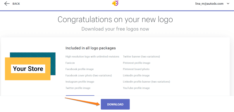 Finally, once we’ve created our iconic dropshipping logo, we’re good to go. Once we get to the final step, we’ll find the “Download” button and click it. This will download our logo file to our computer and we’ll be able to start using it in our branding.